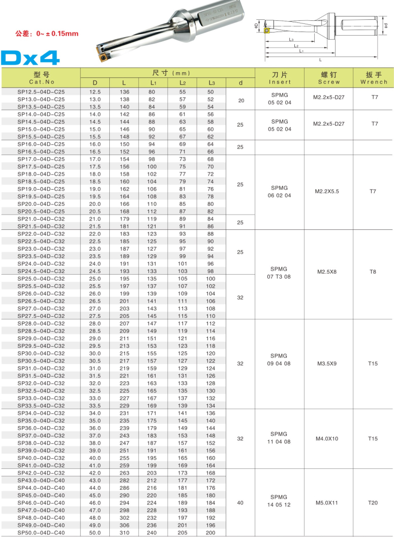 4倍径 15.5mm直径 快速钻 SP15.5-04D-C25
