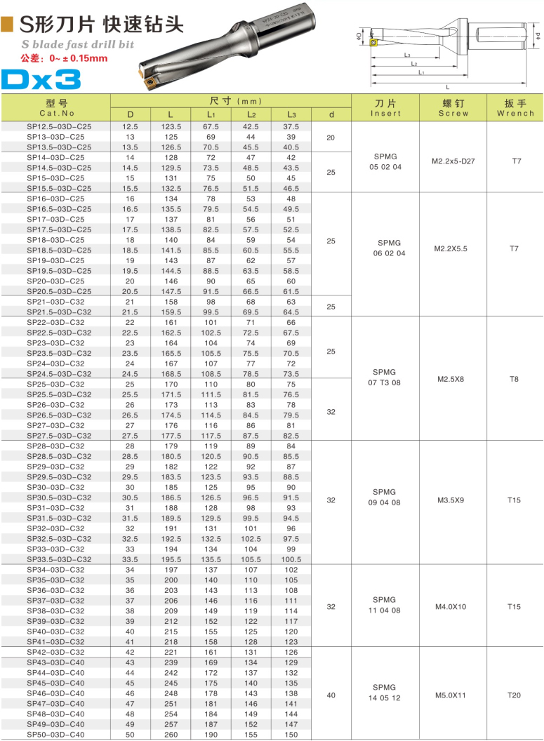 3倍径 32mm直径 快速钻 SP32-03D-C32