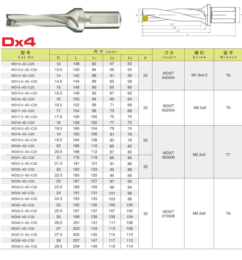 WDX型 4倍径 28.5mm直径 U钻 WD28.5-4D-C32