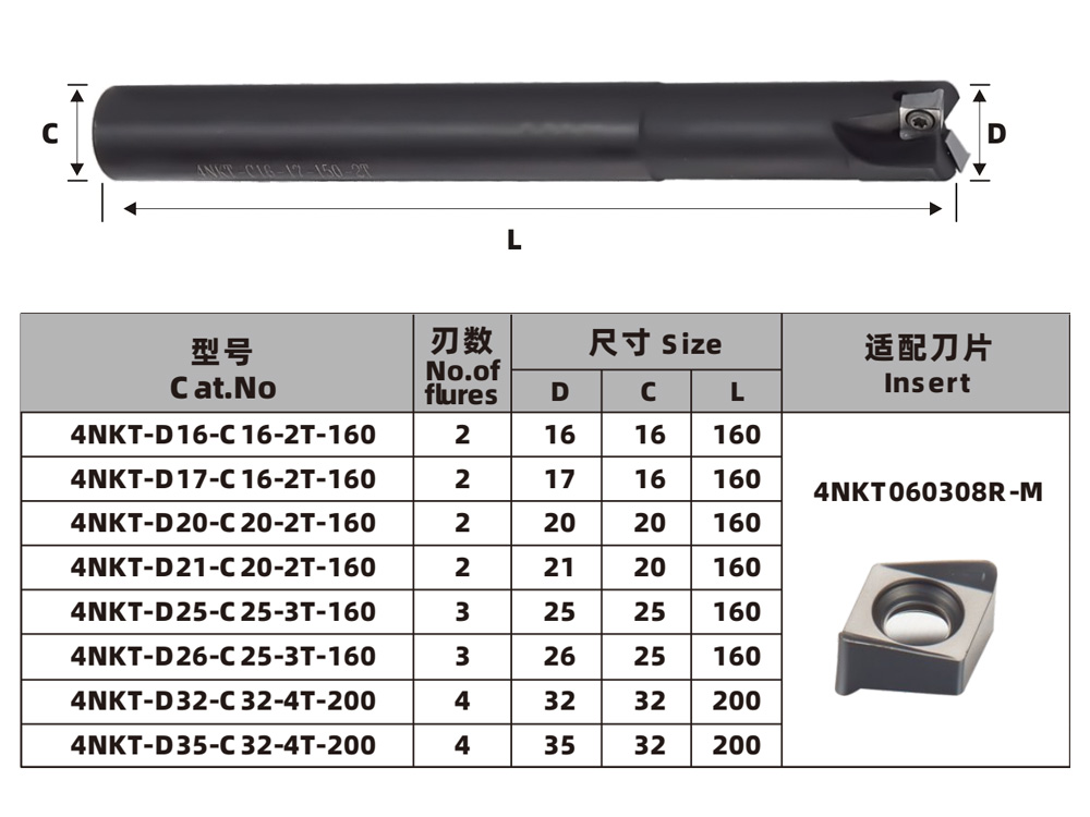 4NKT060308R-M双面刀片,具有四个高正螺旋切削刃和高坡走能力,适用于不锈钢 90° 台肩和轻切削。高效开粗铣刀杆90度直角重切削铣刀片双面加工代替1135,直径16-35mm,高品质刀杆媲美进口。