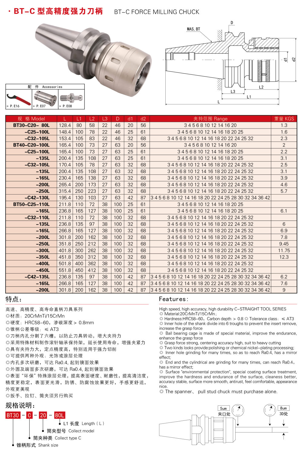 高速、 高精度、 高寿命直柄刀具系列强力铣刀柄
