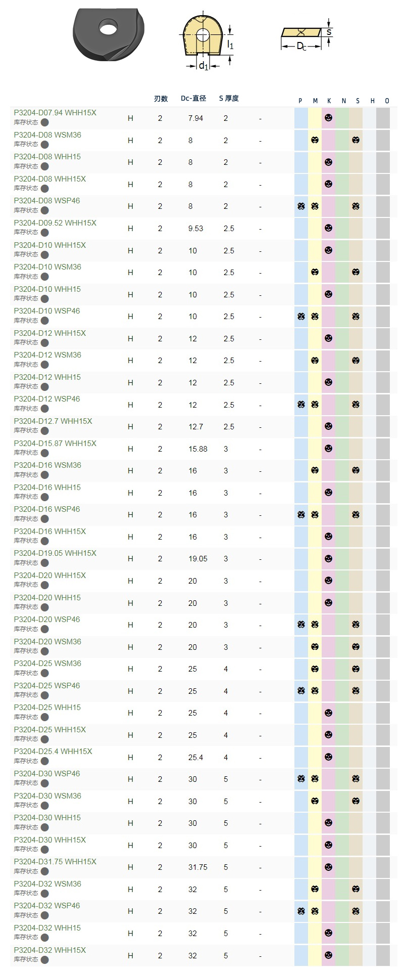 刀具型号R4 R5 R6 R8 R10 R12.5 R15 R16精铣球头刀片