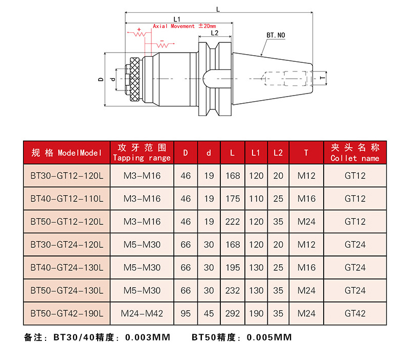 加工中心高精柔性攻丝刀柄BT30/BT40/BT50-GT24 -GT12浮动伸缩过载保护攻丝刀柄