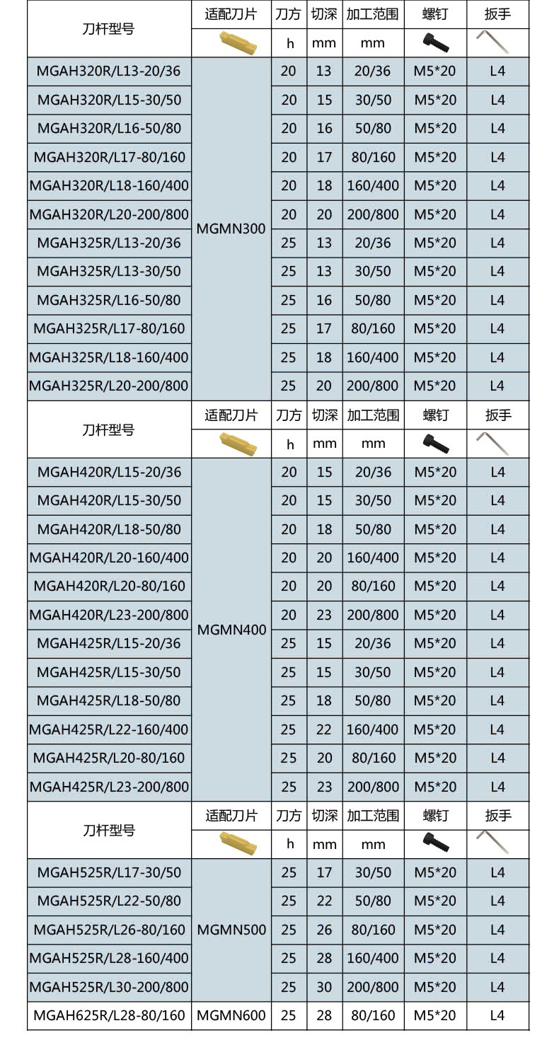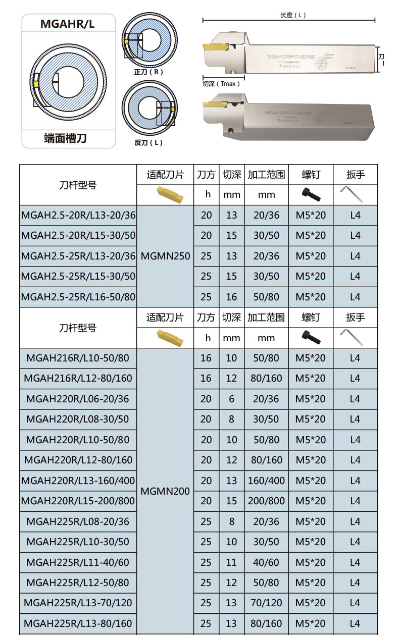 弹簧钢材质大切深反圆弧端面槽刀杆,适配MGMN系列槽刀片 槽宽2-6mm可选,加工端面槽的范围20-800mm。