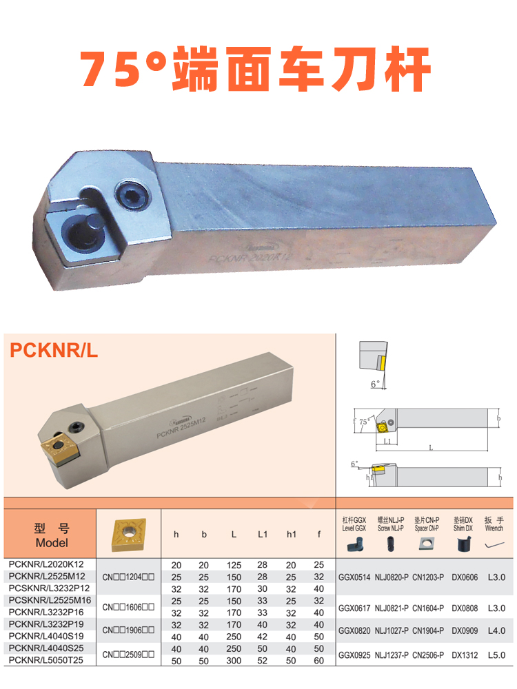 杠杆夹紧端面数控车刀杆PCKNR/L2020K12 PCKNR/L2525M12 PCSKNR/L3232P12 PCSKNR/L2525M16 PCKNR/L3232P16 PCKNR/L3232P19 PCKNR/L4040S19 PCKNR/L4040S25 PCKNR/L5050T25