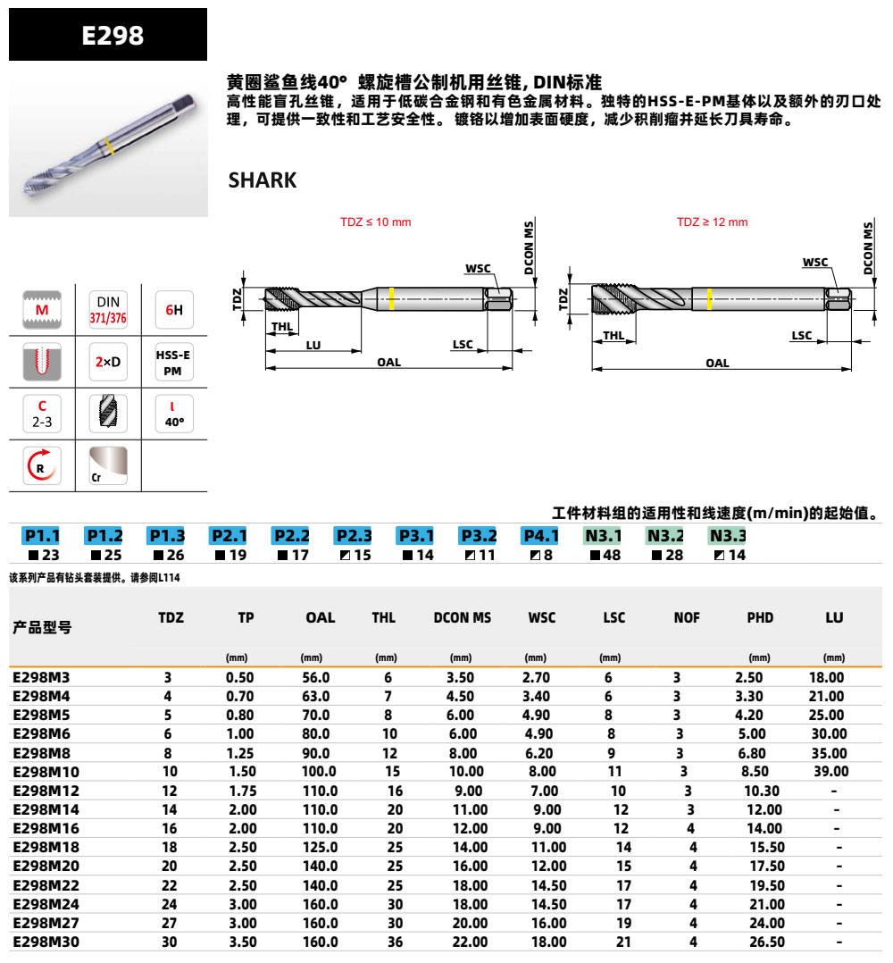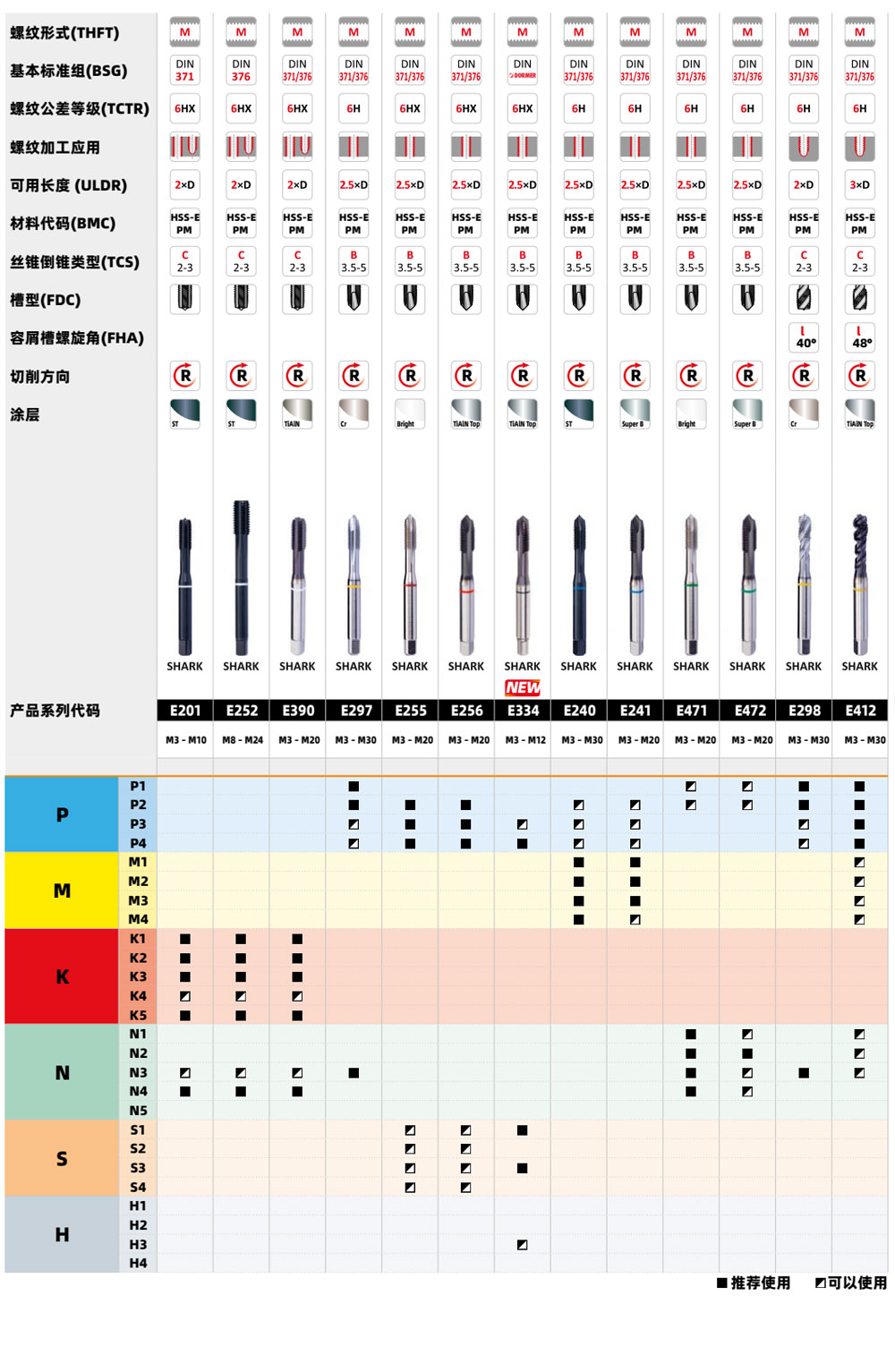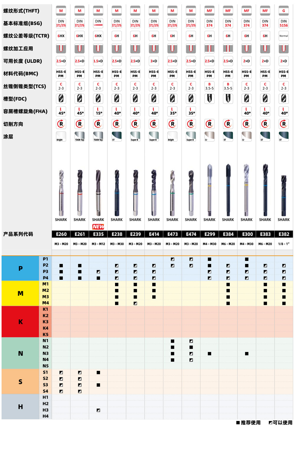 黄圈鲨鱼丝锥:结构钢、普通碳钢和低合金钢