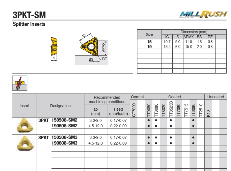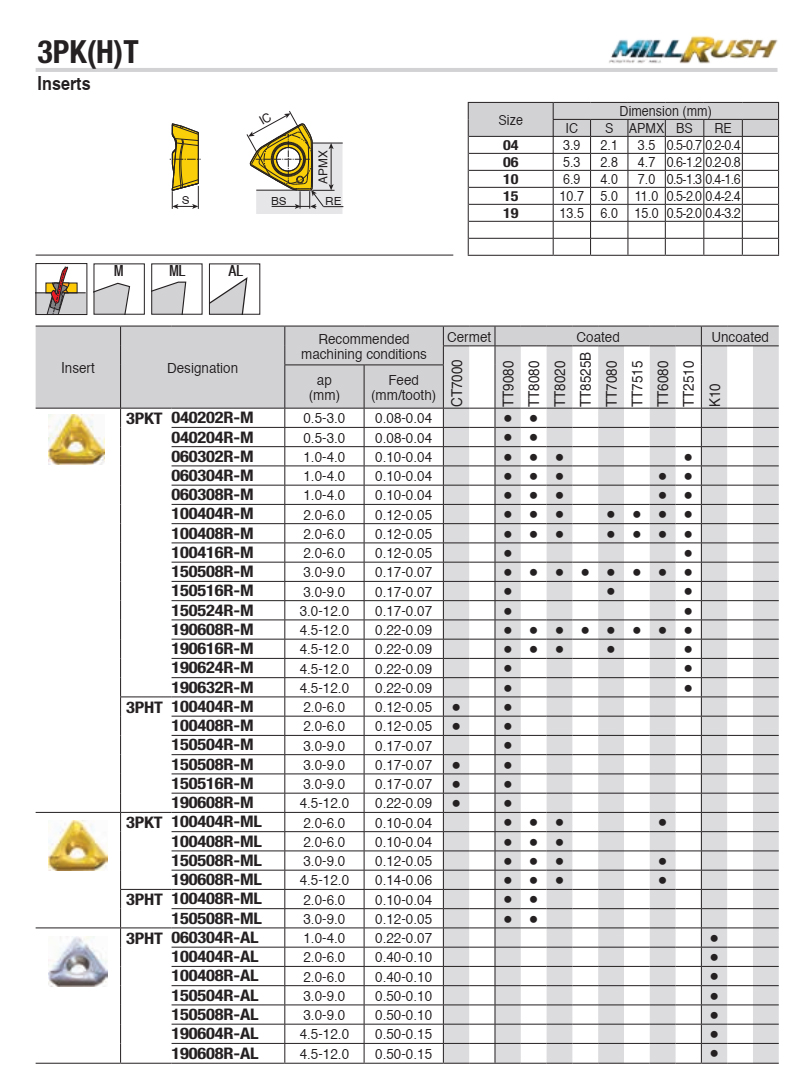 3刃方肩铣刀片 3PKT 150508R-M TT8020 韩国TGK 钢、不锈钢、耐热合金 TT8020 在线联系