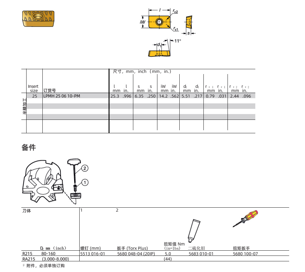 如果您需要采购插铣刀片LPMH 25 06 10-PM 4340 LPMH250610-PM 4240,可以联系我们,我公司可以提供该产品型号的具体产品参数,并为您提供一个好的价格。无论铣削平面、台肩、槽、齿轮还是复杂的3D形状,您都能在这里找到所需的铣刀。我们的高效铣削刀具将使您具备竞争优势并帮助您保持高生产效率。用于钢件、不锈钢、铸铁、高温合金、钛合金和HRSA、铝合金、有色金属、淬硬铣削的刀片和材质欢迎致电联系。