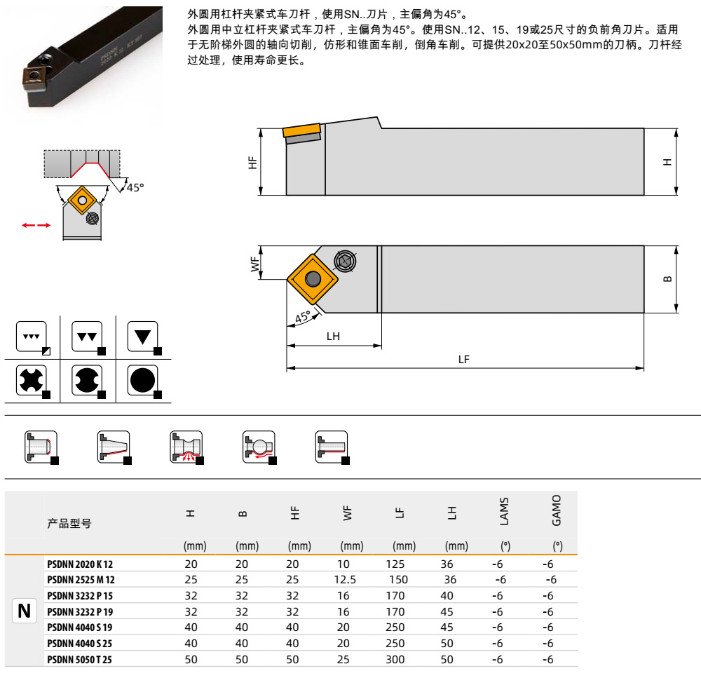 SN.. 1204.. 外圆车削刀杆 PSDNN 2020 K 12 订货号 6757038