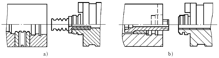 Varilock工具系统是由瑞典山特维克可乐满公司于1980年研制成的轴向拉紧工具系统,如图a所示,它是双圆柱配合,起导向及定心作用,用中心螺钉拉紧,模块装卸显得不太方便。