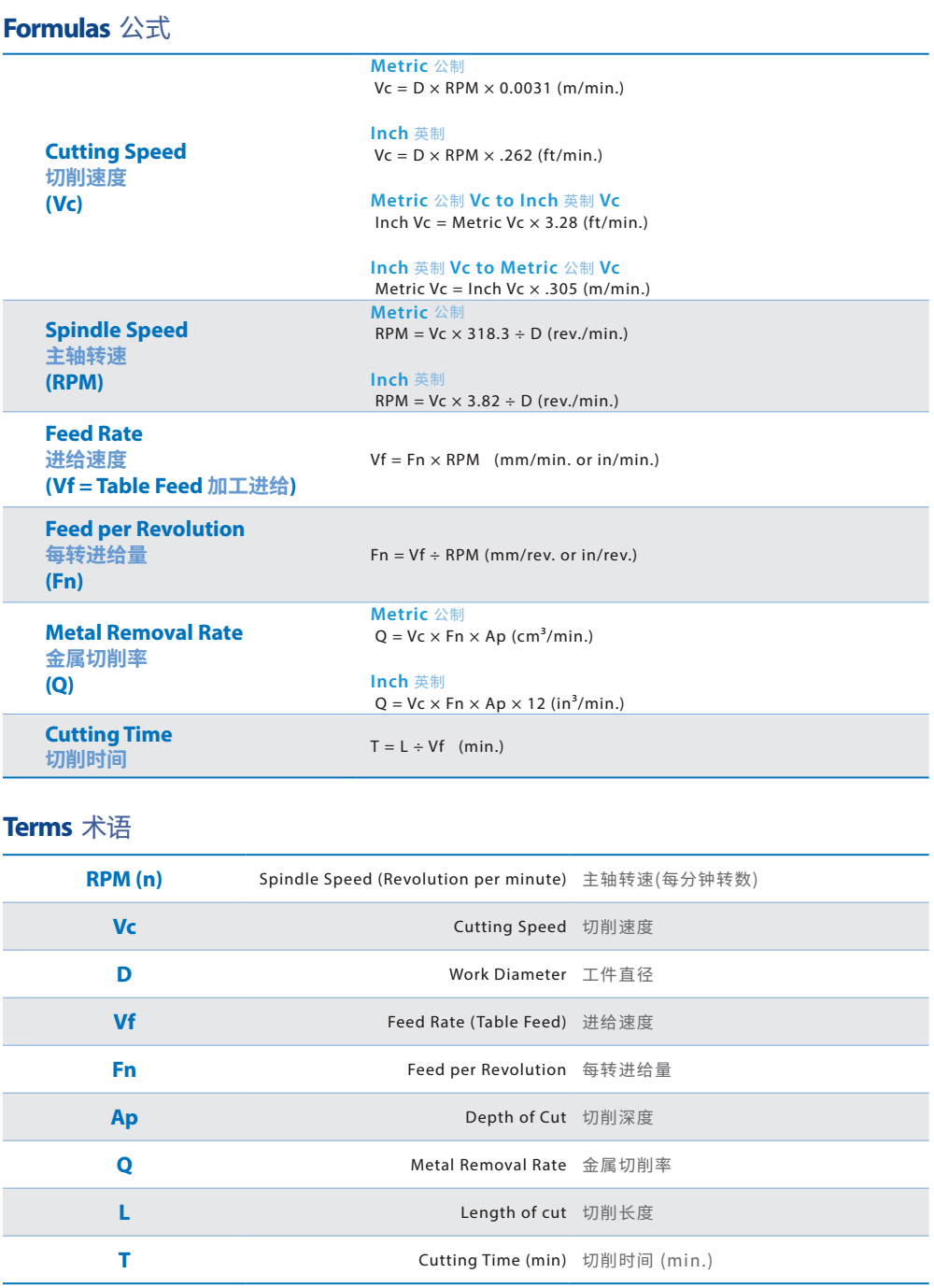 Cutting Time切削时间 T = L ÷ Vf (min.)