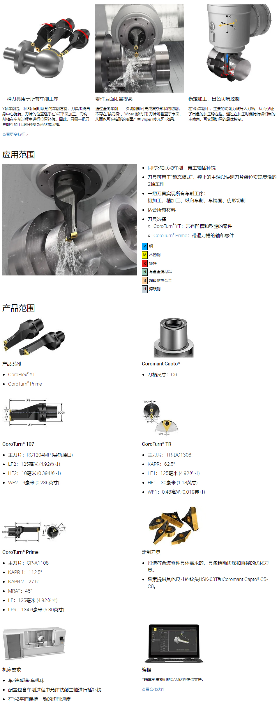 山特维克可乐满Y轴车削刀具CoroPlex YT