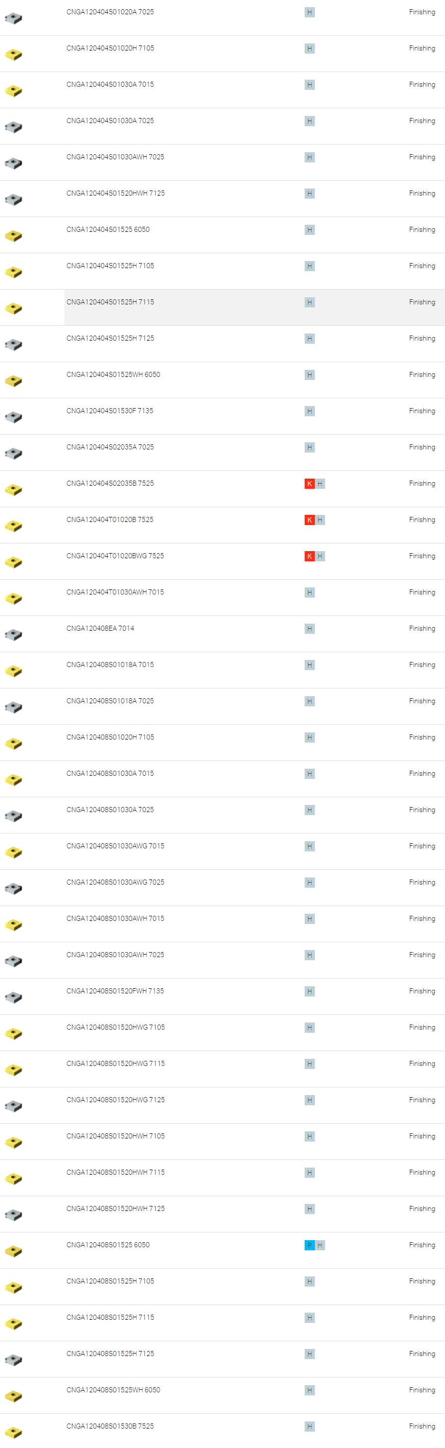 CNGA120404S01525H 7115 淬硬钢 精加工